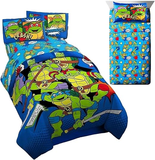 Amazon Com Ninja Turtles Tmnt Teenage Mutant Retro Twin Bedding Twin Full Comforter 3pc Twin Size Sheet Set Home Kitchen