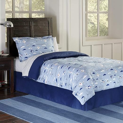 Amazon Com Os 4 Piece Full Sized Kids Airplane Comforter Set Featuring Airplanes Jumbo Jets Military Planes Helicopters Clouds All Over Pattern Cute Colors Light Blue White Boys Flying Themed Home Kitchen