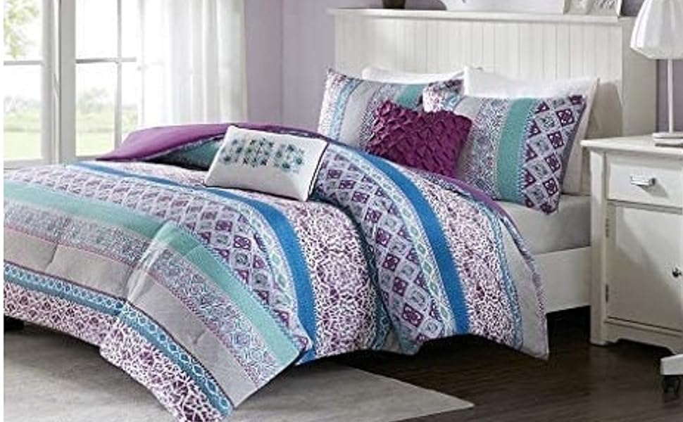 Amazon Com Intelligent Design Cozy Comforter Casual Boho Pieced Design Modern All Season Bedding Set With Matching Sham Decorative Pillow Full Queen Purple Home Kitchen