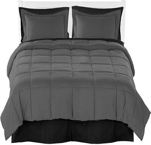 Amazon Com Bare Home Full Xl Comforter Set Sheet Set Bed Skirt Premium Ultra Soft Brushed Microfiber Comforter Set Grey Sheet Set Black Bed Skirt Black Home Kitchen