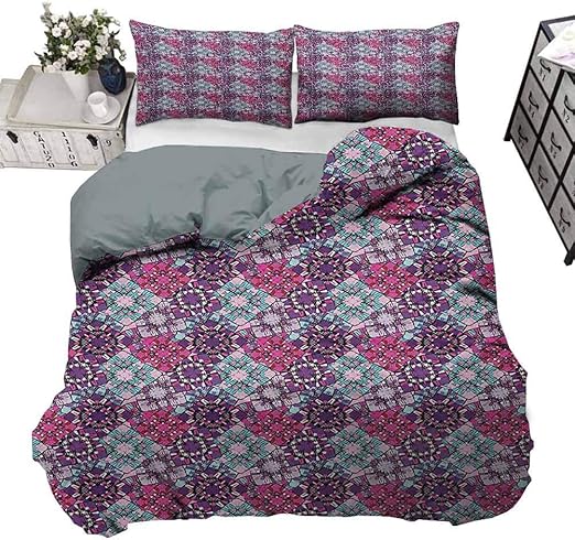 Amazon Com Bedding Comforter Sets Duvet Cover Psychedelic Bed Quilt Cover Decor Funky Geometrical Squares With Grunge Look Modern Urban Design Graffiti Art 3 Piece Bedding Set With 2 Pillow Shams King Size Home