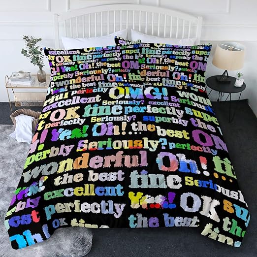 Amazon Com Blessliving Rainbow Words Comforter Set Funky Fun Cute Colorful Bedding Sets Inspiring Quote Bed Set 3 Piece Neon Letter On Black Full Queen Size Quilt Sets Home Kitchen