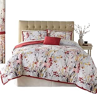 Amazon Com Brylanehome Funky Floral 6 Pc Comforter Set King Burgundy Multi Home Kitchen