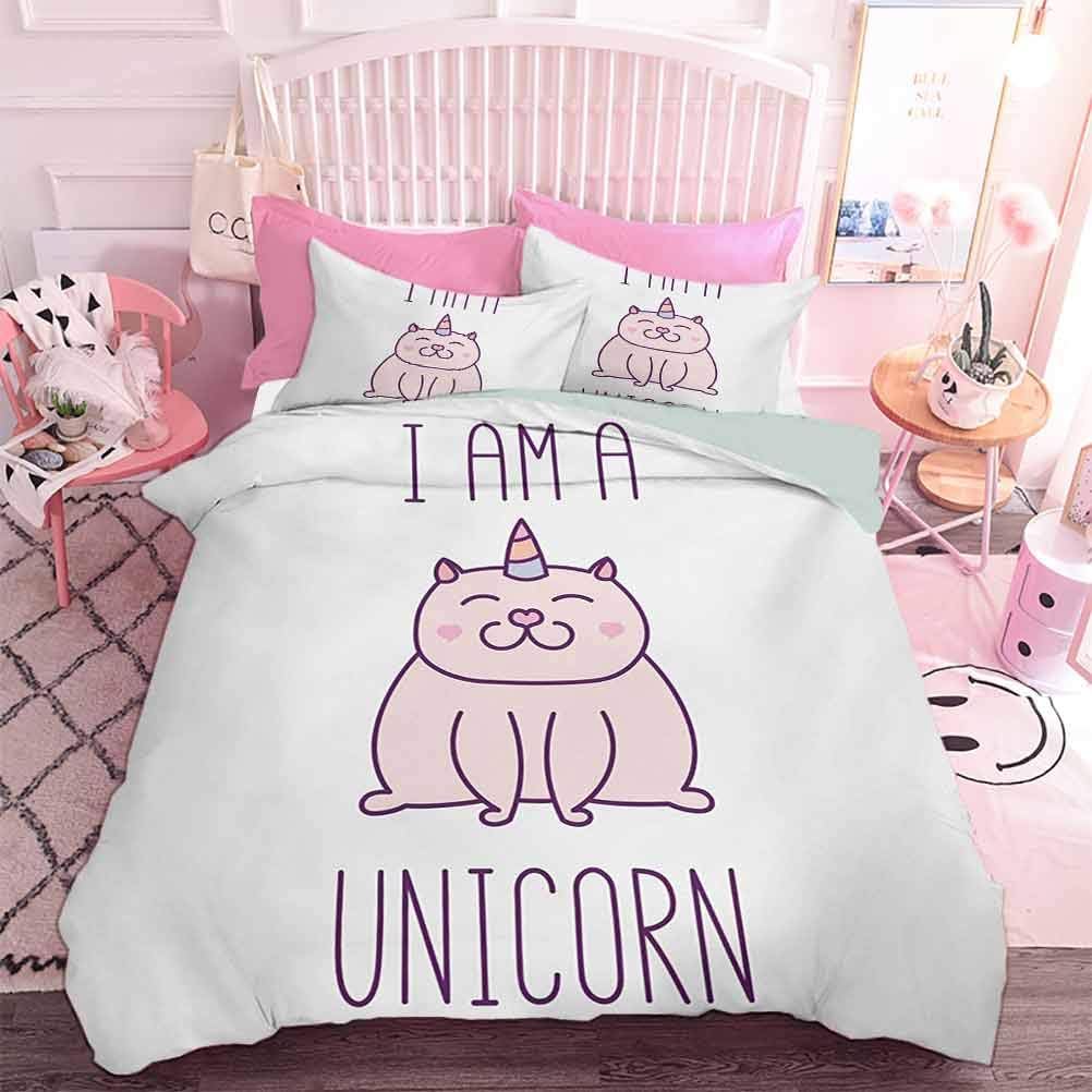 Amazon Com Hiiiman 3pc Comforter Set Fantasy Animal With I Am A Unicorn Quote Lovely Funny Fictive Kitten 3pcs Queen Size Machine Washable Home Kitchen