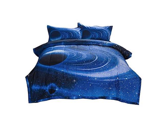 Blue 3 Pieces Comforter Set Galaxy Bedding Set Full Size With 2 Matching Pillows Newegg Com