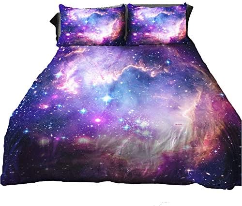 Amazon Com Space Universe Duvet Cover Set Galaxy Bedding Set Purple Blue Starry Sky Bedding Queen 3 Pieces For Boys Girls 1 Duvet Cover 2 Pillowcases Blue Purple Queen Kitchen Dining