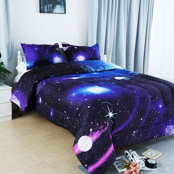 Amazon Com Ntbed Galaxy Comforter Set Full Size Purple 3 Pieces Microfiber Universe Reversible Quilt Sky Oil Printing Outer Space Bedding For Boys Teens Girls Kids Home Kitchen