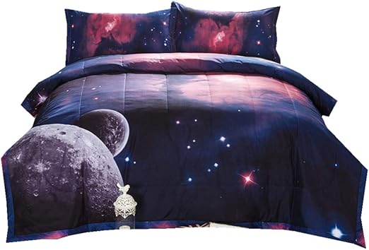 Amazon Com Kinbedy Space Galaxy Comforter Sets Full Size For Teen Kids Comforter Bedding Sets 3 Piece 1 Comforter 2 Pillowcases Queen Home Kitchen