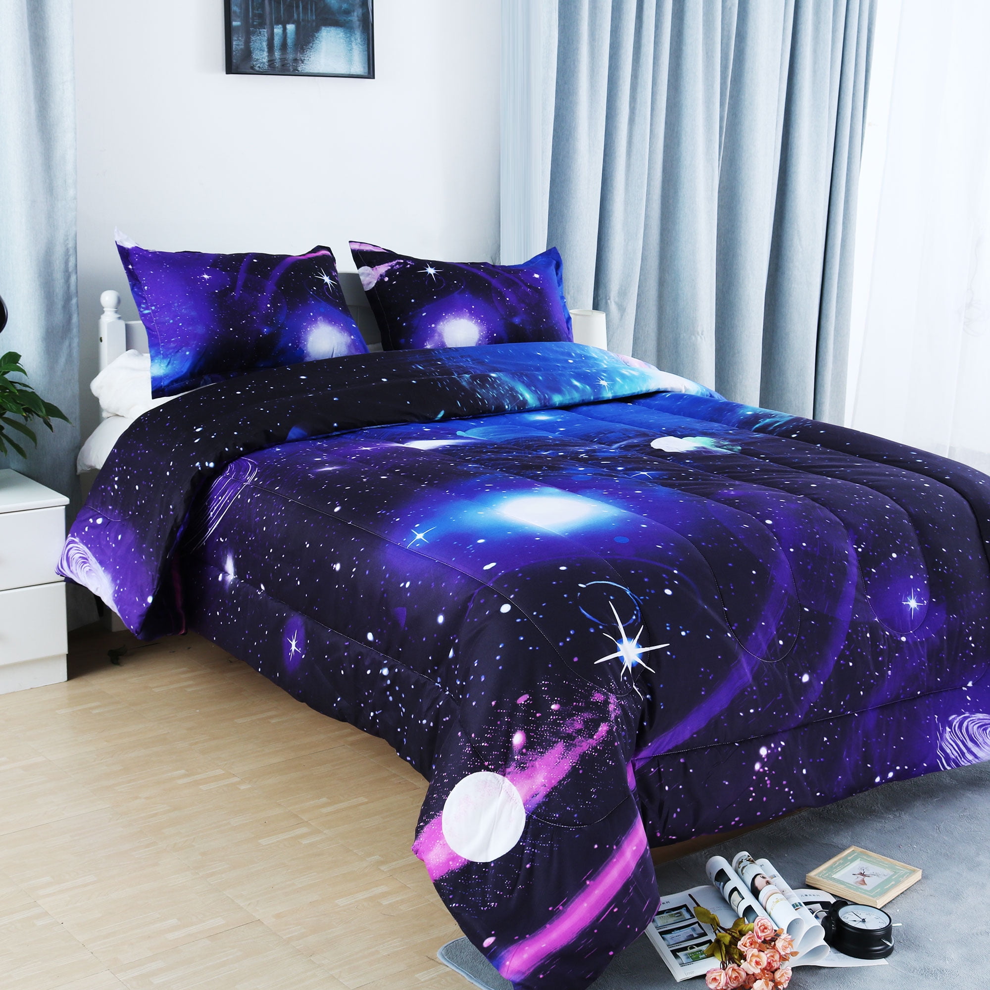 Amazon Com Kinbedy Space Galaxy Comforter Sets Full Size For Teen Kids Comforter Bedding Sets 3 Piece 1 Comforter 2 Pillowcases Queen Home Kitchen
