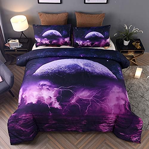 Amazon Com Holawakaka Galaxy Comforter Set Queen Size Moon Sea Lightning Printed Quilted Bedding Set Bedspread Purple Moon Sea Queen Home Kitchen