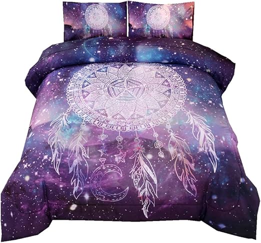 Amazon Com Ntbed Galaxy Comforter Set Queen Purple 3 Pieces Bohemian Dreamcatcher Printed Microfiber Bedding Exotic Pattern Boho Quilt Set For Adults Teens Girls Home Kitchen