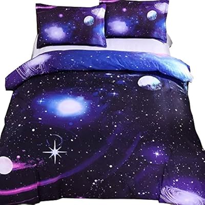 Amazon Com Encoft 3d Galaxy Comforter Sets Twin Size For Kids Comforter Bedding Sets 3 Piece 1 Comforter 2 Pillowcases Twin Galaxy Purple Comforter Sets Home Kitchen