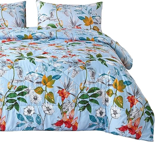 Amazon Com Enjohos Beautiful Flower Garden Bedding Lightweight Alternative Reversible Comforter Set Insert Microfiber Box Stitched 3pcs Floral Duvet Queen Bedspread For Teens Girl And Women Home Kitchen