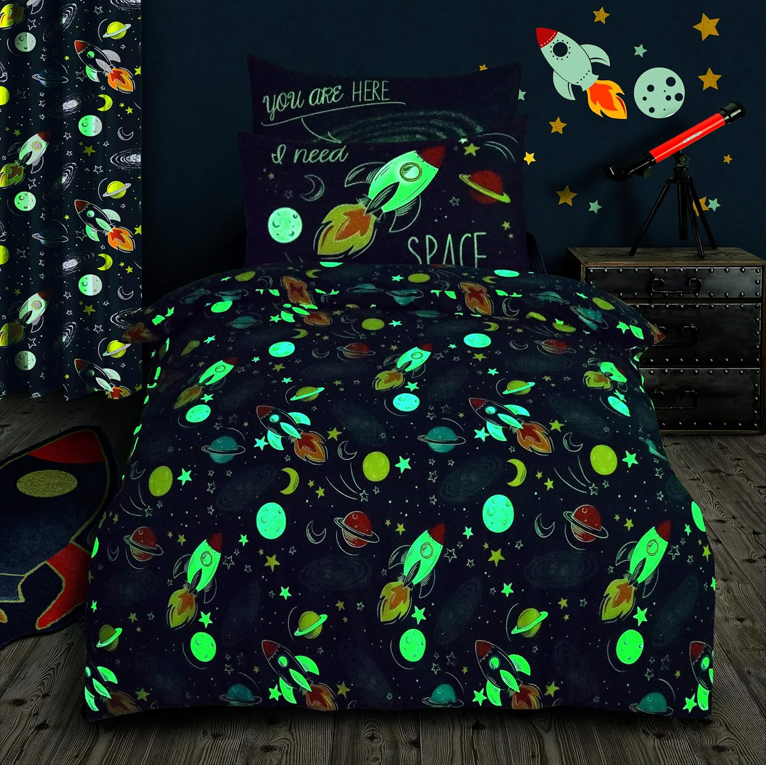 Childrens Space Galaxy Stars Glow In The Dark Bedding Set Single Bed Amazon Co Uk Kitchen Home