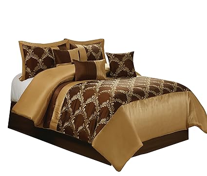 Beautiful Rich Elegant 7 Pc Brown Gold Comforter Set Queen King Size Luxury Comforter Sets Comforter Sets Bed Comforter Sets