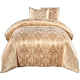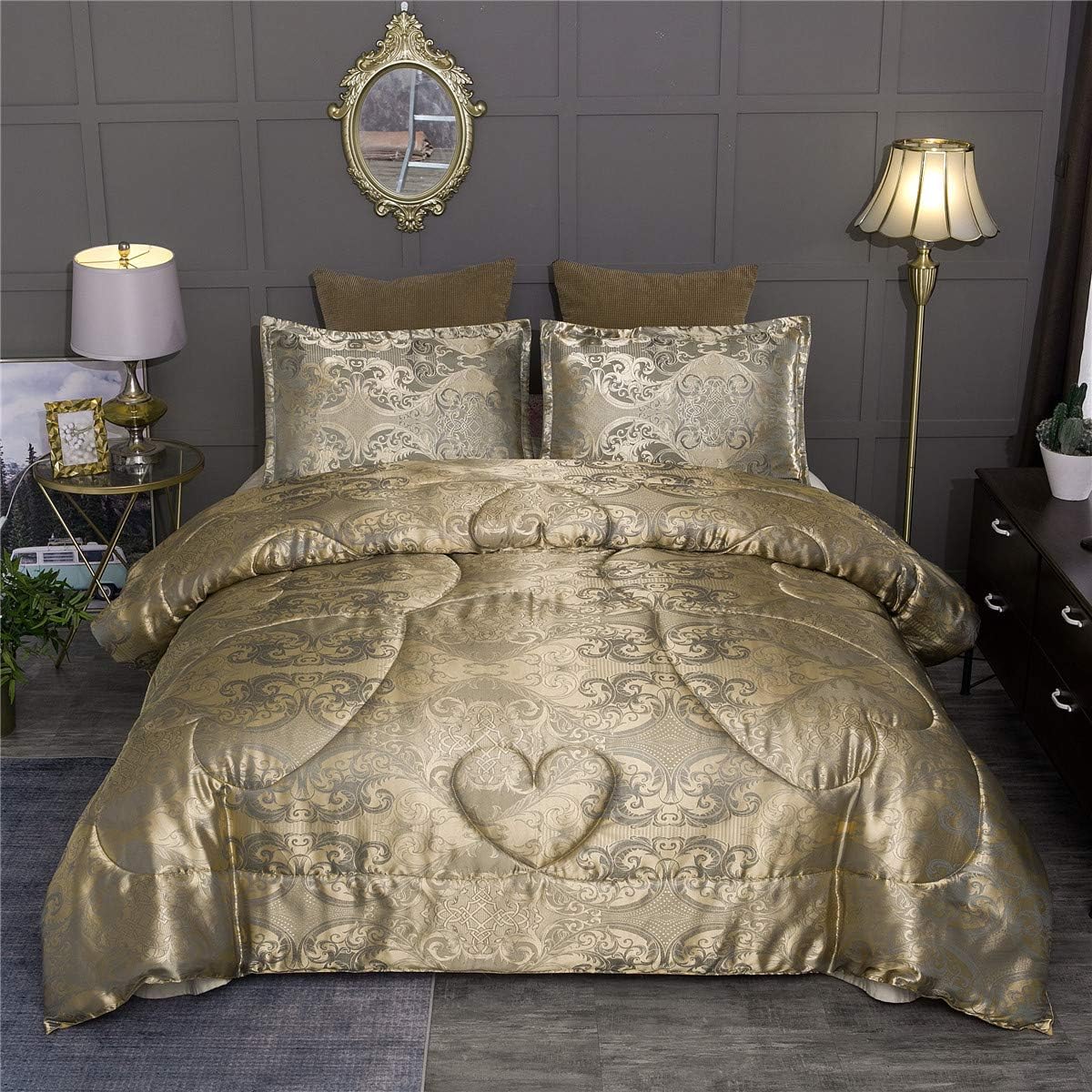 Amazon Com Luxury Comforter Set Full Queen 3 Pieces Jacquard Paisley Brushed Heart Quilted Microfiber Bedding Sets Gold Queen Kitchen Dining