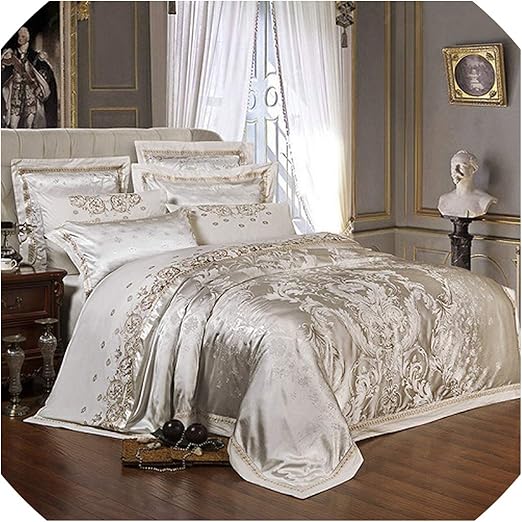Amazon Com Tt Lemon Silver Gold Silk Satin Jacquard Duvet Cover Bedding Set Queen King Size Embroidery Bed Set Bed Sheet Fitted Sheet Set Color 3 King 6pcs Bed Sheet Style Home Kitchen