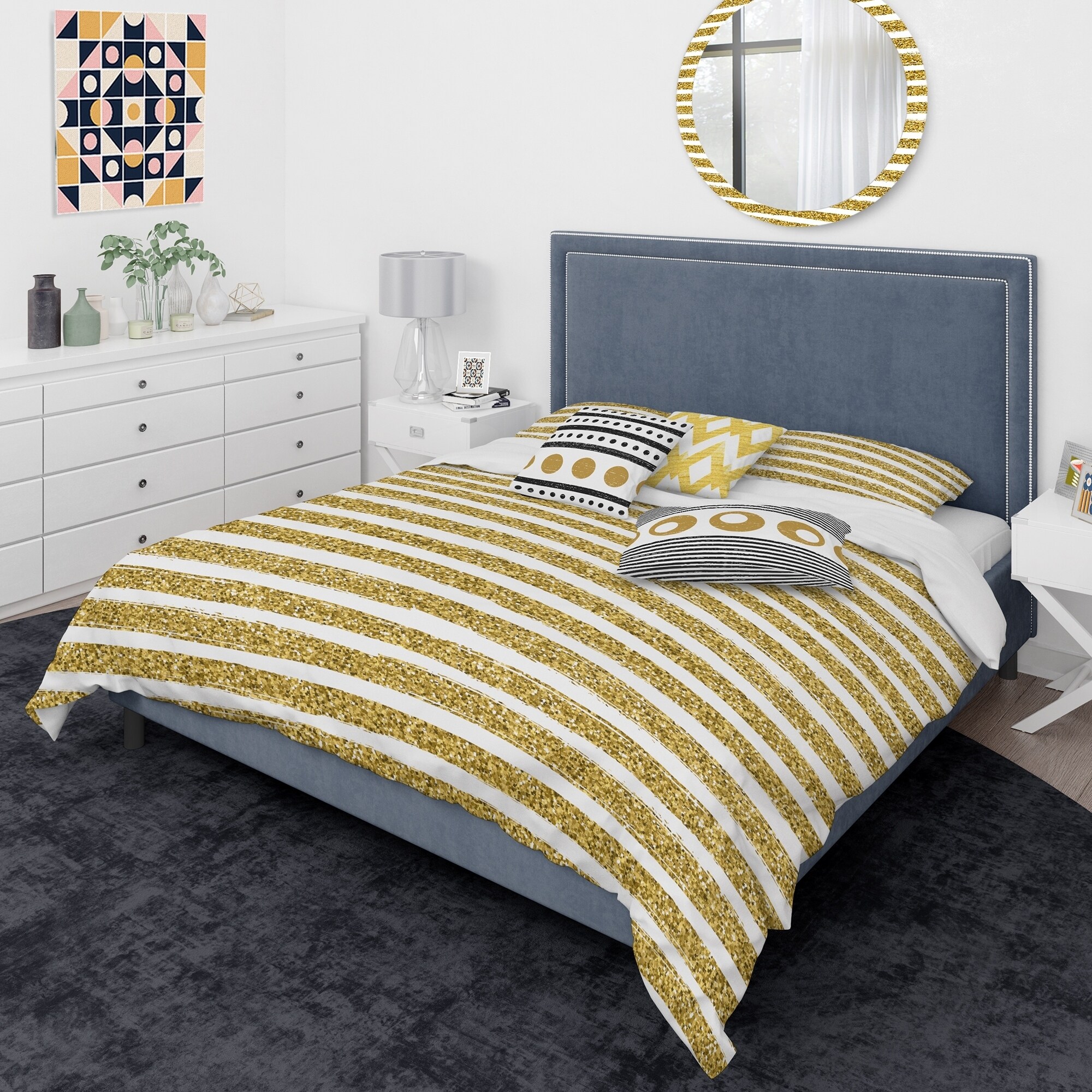 Shop Designart Golden Horizontal Lines Mid Century Modern Duvet Cover Comforter Set Overstock 29257835