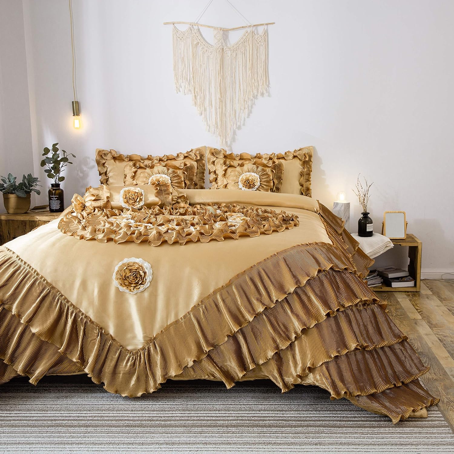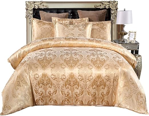 Amazon Com Boloni Dress Golden Bedding Set King Jacquard Duvet Cover Set Luxury European Baroque Style Quilt Comforter Cover 1 Duvet Cover 2 Pillowcases Hidden Zipper Closure Gold Home Kitchen