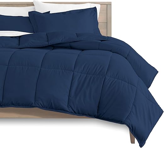 Amazon Com Bare Home Comforter Set Queen Size Goose Down Alternative Ultra Soft Premium 1800 Series Hypoallergenic All Season Breathable Warmth Queen Dark Blue Home Kitchen