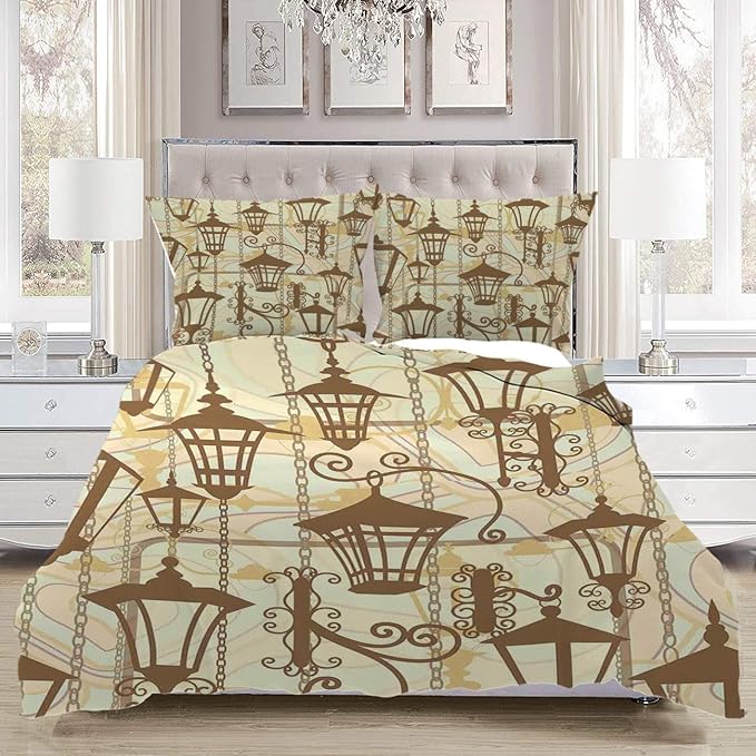 Amazon Com Mingz Lanterns Bedding Comforters Luxury Soft Comfortable Beige Graphic Of Old Town Wrought Lanterns Nostalgic Style Art Green Beige Luxurious Bedroom Bedding Set Gal King Size Home Kitchen