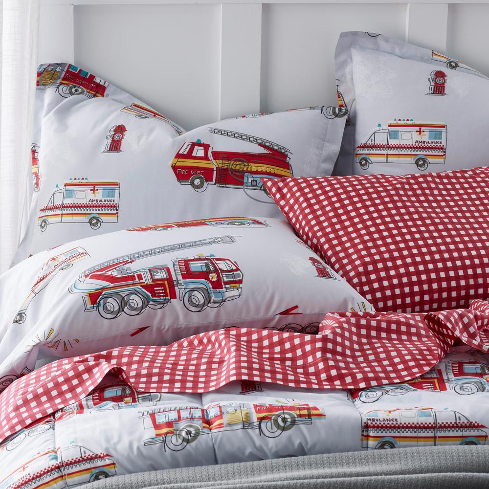 Company Kids By The Company Store Firetrucks Multicolored Graphic Organic Cotton Percale Twin Comforter 30331e T Multi The Home Depot
