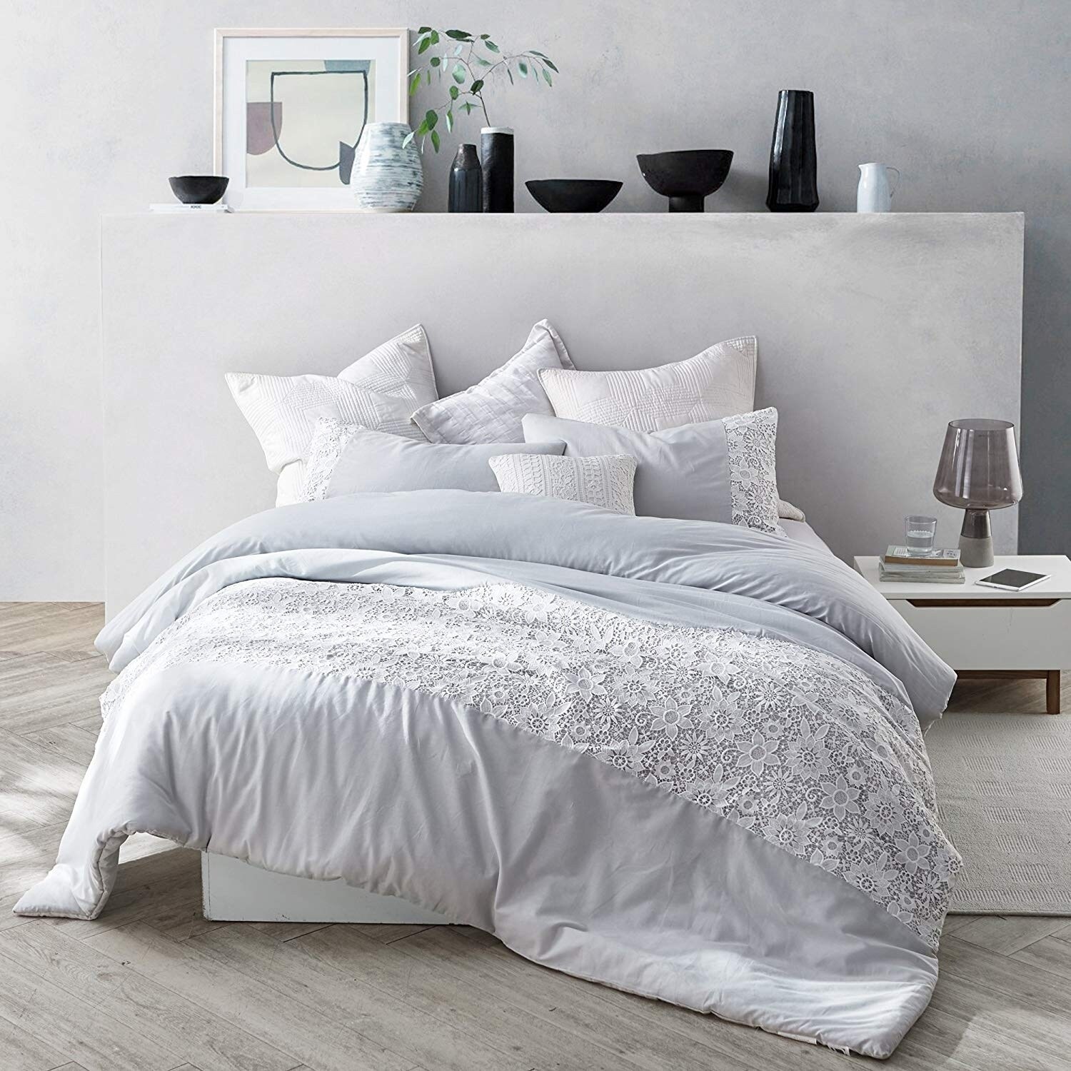 Amazon Com Nanko King Comforter Set 3pc White And Gray Grey Flower Floral Reversible Down Alternative Microfiber Bedding All Season Duvet And 2 Pillowshams Bed Sets For Women 104 X