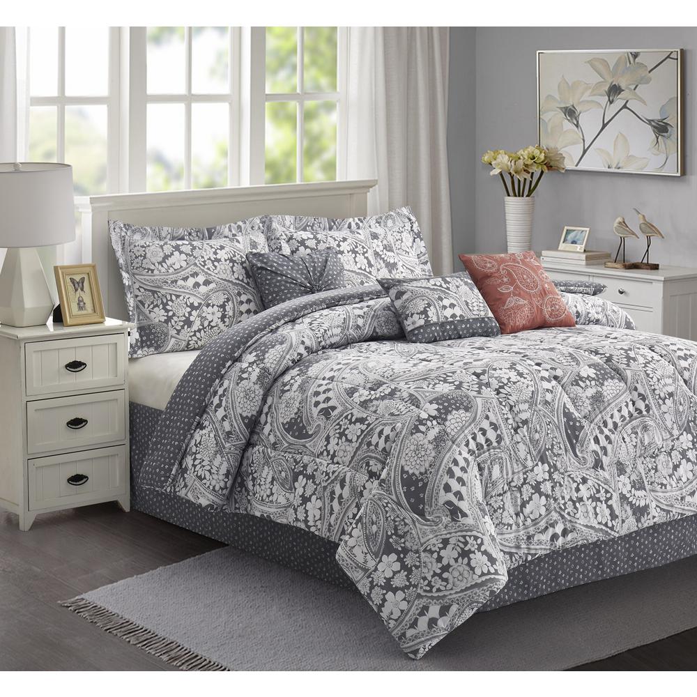 R2zen Ellie 7 Piece Grey Floral Queen Comforter Set Rz613gy03 The Home Depot