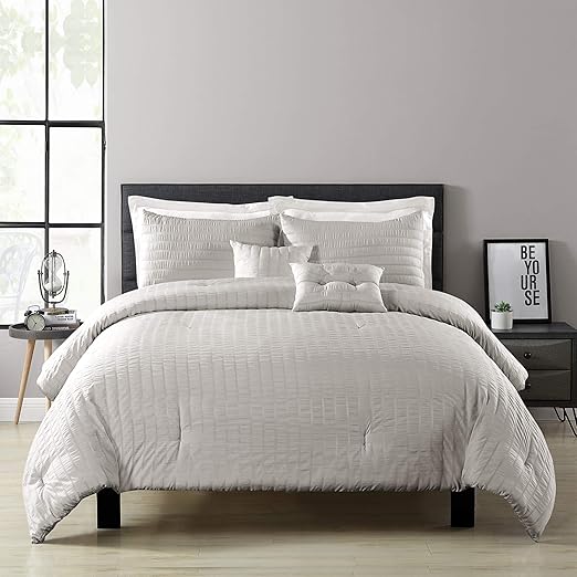 Amazon Com Lush Decor Farmhouse Seersucker 5 Piece King Comforter Set Light Gray Home Kitchen