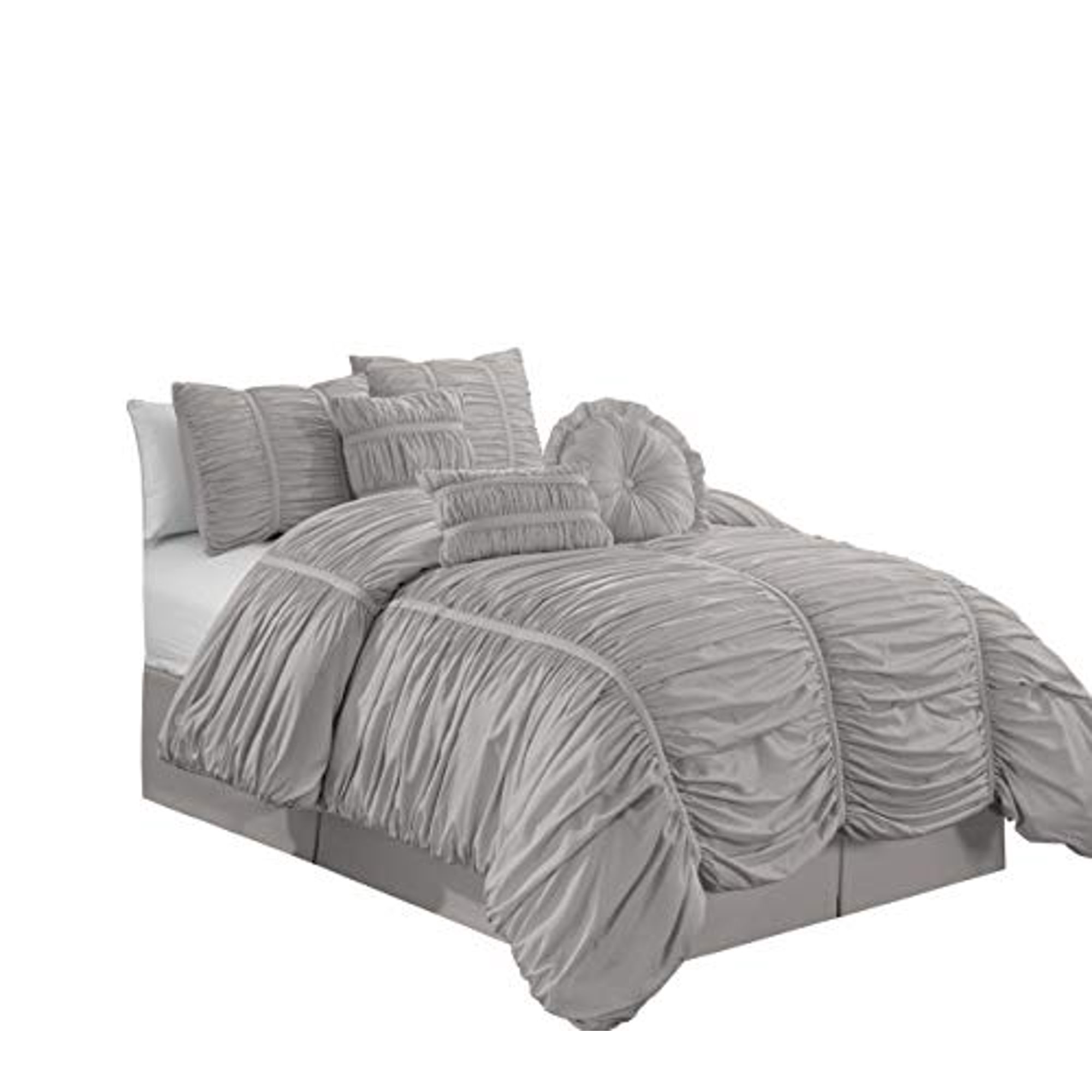 Hig 7 Piece Gray Microfiber Chic Ruched Pleated And Sequins Embroidered Comforter Set Queen King Calking
