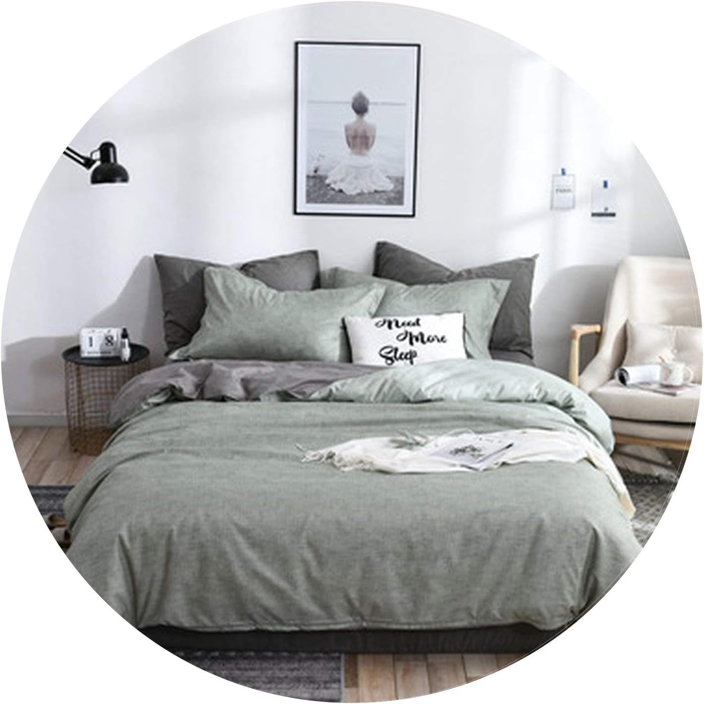 Amazon Com Dddatian Beddings Set Cotton Solid Plaid Ab Side Brife Modern Bed Comforter Twin Queen King Size 3 4pcs Duvet Cover Sheet Set Soild Green Gray Super King Home Kitchen