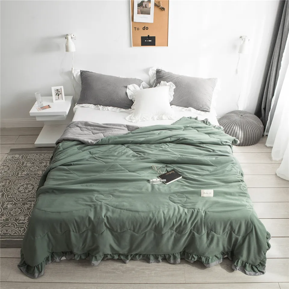Princess Style Pure Color Summer Quilt Bedspread Blanket Green Comforter Soft Bed Cover Twin Full Queen Quilting Lace Bedclothes Quilts Aliexpress