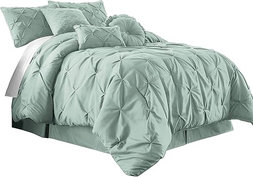 Amazon Com Chezmoi Collection Sydney 7 Piece Pinch Pleat Pintuck Bedding Comforter Set Full Seafoam Green Home Kitchen