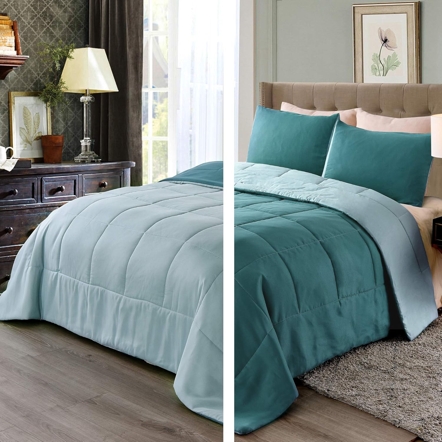 Amazon Com Exclusivo Mezcla Lightweight Reversible 2 Piece Comforter Set For All Seasons Down Alternative Comforter With 1 Pillow Sham Twin Size Turquoise Kitchen Dining