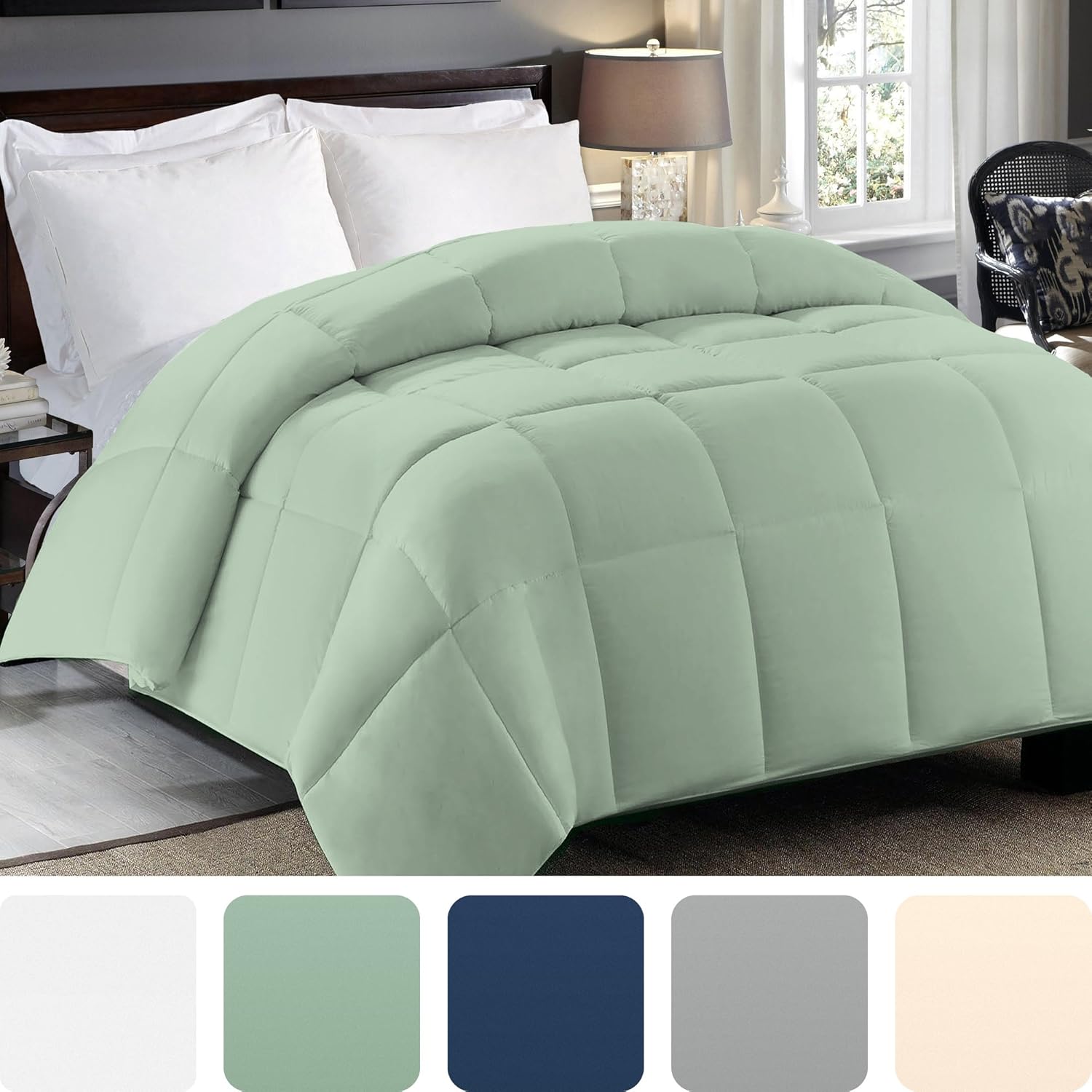 Amazon Com Cosy House Collection Premium Down Alternative Comforter Sage Green All Season Hypoallergenic Bedding Lightweight And Machine Washable Duvet Insert Full Queen Home Kitchen