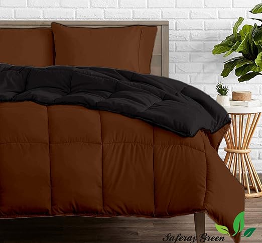 Amazon Com Saferay Green Reversible Comforter All Season Luxury 100 Organic Cotton Grand King Size 106 X 106 Inches 1 Piece Goose Down Alternative Comforter With 4 Corner Tabs 500 Gsm Black Brown Home Kitchen