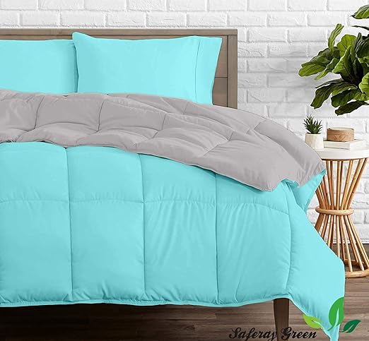 Amazon Com Saferay Green Reversible Comforter All Season Luxury 100 Organic Cotton Eastern King Size 118 X 110 Inches 1 Piece Goose Down Alternative Comforter With 4 Corner Tabs 500 Gsm Aqua Silver Home Kitchen