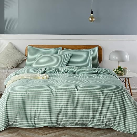 Amazon Com Jellymoni Green Stripe 100 Washed Cotton Duvet Cover Set 3 Pieces Luxury Soft Bedding Set With Buttons Closure Solid Color Pattern Duvet Cover Queen Size No Comforter Kitchen Dining