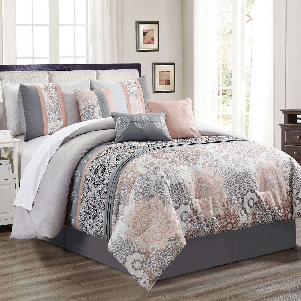 11 Piece Poplar Blush Gray Bed In A Bag Set King Walmart Com