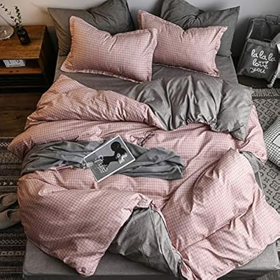 Amazon Com Lurson Blush Pink Gray Plaid Queen Duvet Cover Set Modern Black Mini Grid Geometric Gingham Checker Reversible Bedding Set Full Size Soft Hypoallergenic Microfiber Check Comforter Covers 3pcs Home Kitchen