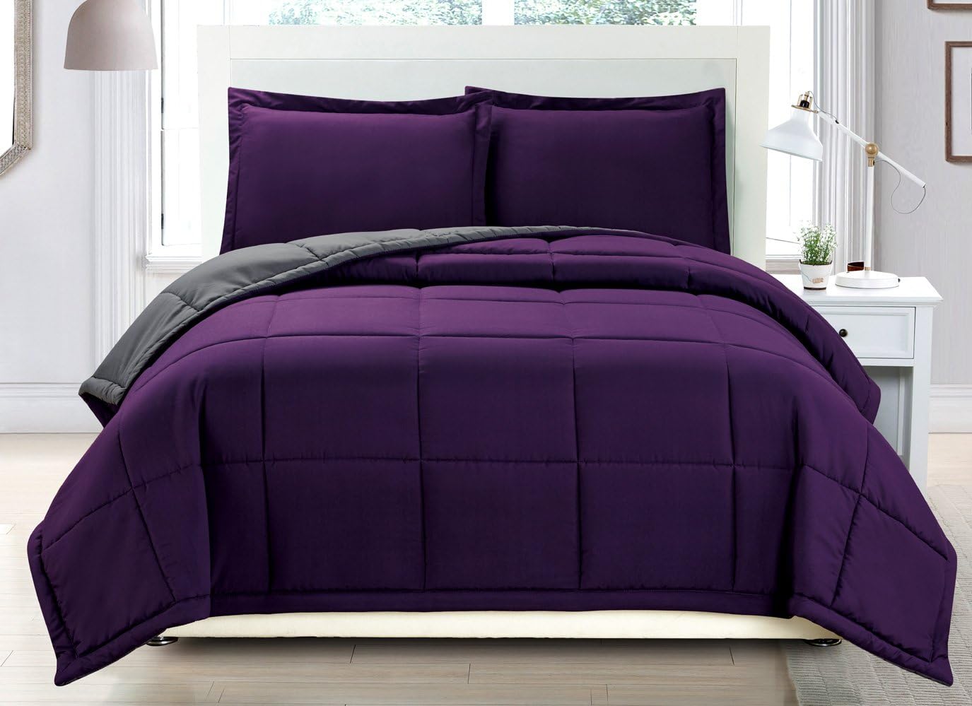 Amazon Com 9 Piece Queen Duchess Plum And Gray Comforter Set Home Kitchen Purple Bedrooms Bedroom Decor Comforter Sets