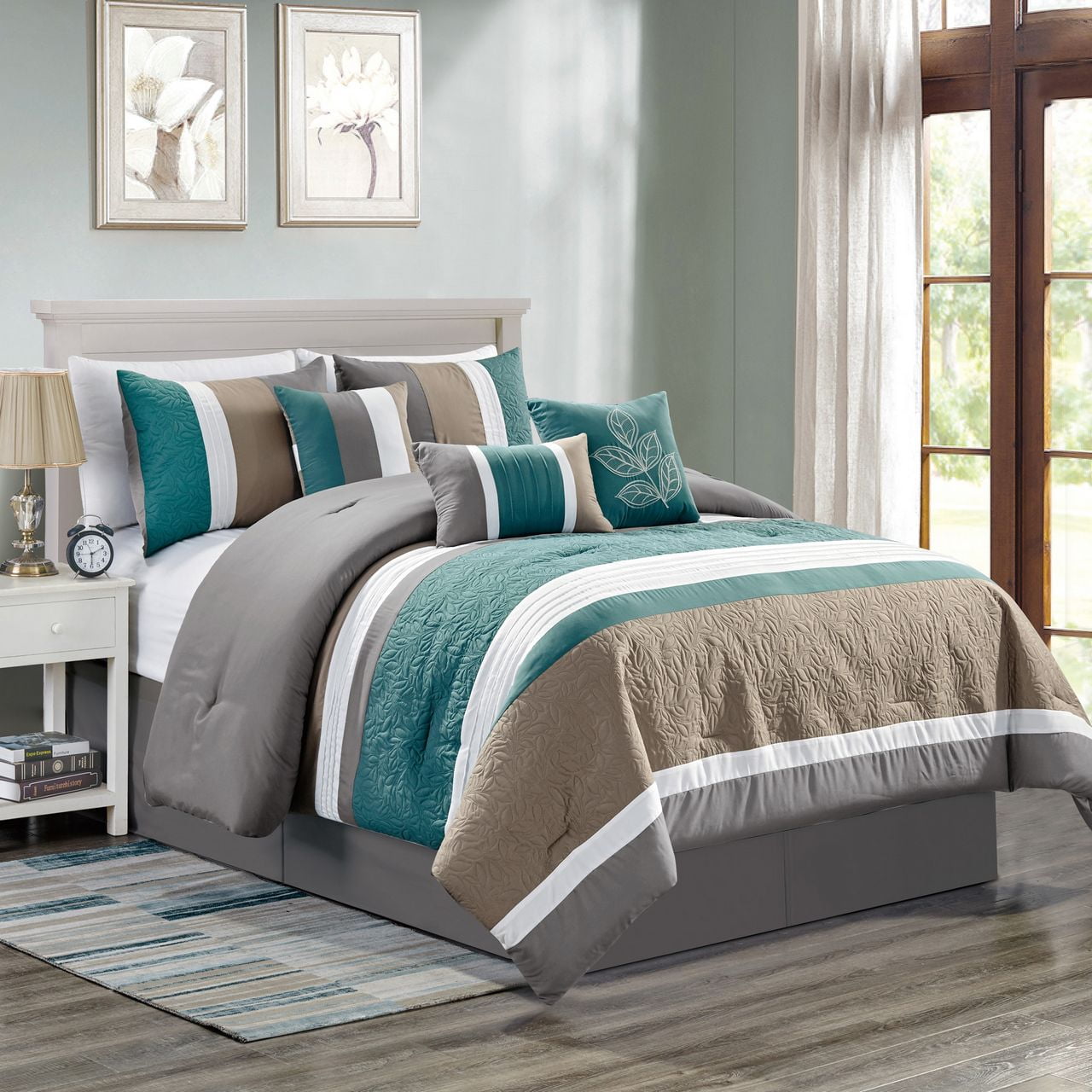 7 Piece Abel Teal Gray Taupe Comforter Set King Walmart Com Walmart Com