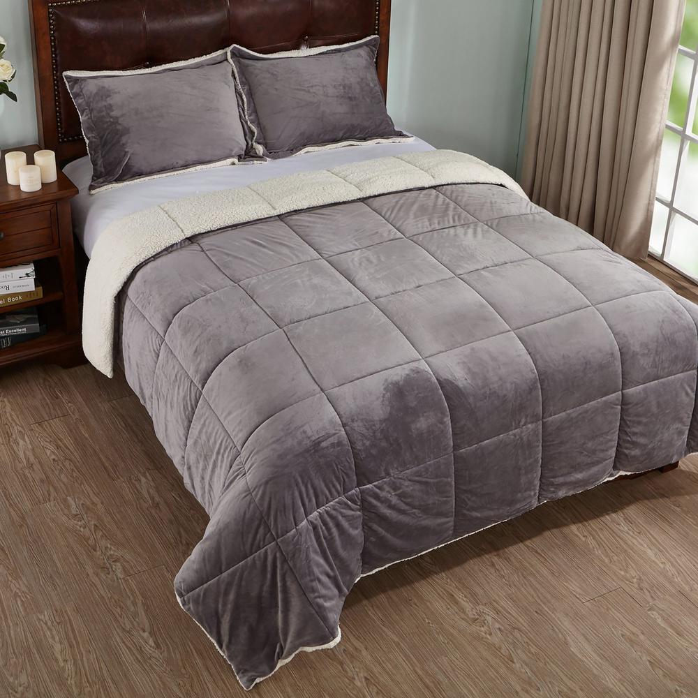 Peace Nest Reversible Sherpa Grey King Down Alternative Comforter Set King In Grey He Ac 18009 B K The Home Depot