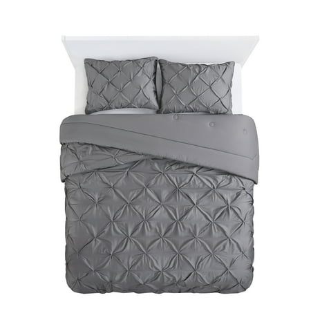 Estellar 3pc Light Grey Comforter Set Queen Size Pinch Pleat Pattern Down Alternative Pintuck Bedding By Cozy Beddings Walmart Com Walmart Com