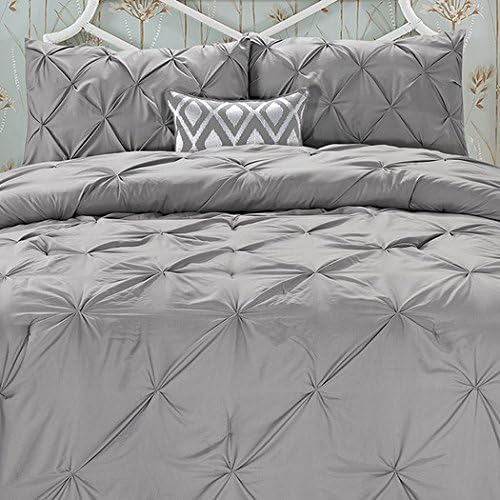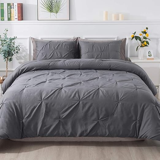 Amazon Com Andency Dark Gray Pinch Pleat Comforter Queen 90x90inch 3 Piece 1 Pintuck Comforter And 2 Pillowcases Grey Pintuck Microfiber Down Alternative Comforter Bedding Set Kitchen Dining