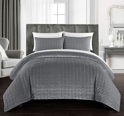 Amazon Com Truly Soft Everyday Grey Velevet Pintuck Pleated Velvet Winter Comforter Twin Xl Home Kitchen