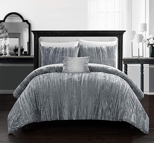Amazon Com Chic Home Westmont 8 Piece Comforter Set Crinkle Crushed Velvet Bed In A Bag Bedding Sheet Set Decorative Pillow Shams Included Queen Grey Home Kitchen