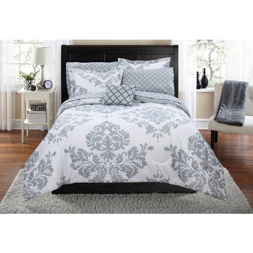 Mainstays Grey Teal 6 Pc Bed In A Bag Bedding Set With Bonus Sheet Set Twin Twin Xl Walmart Com Walmart Com