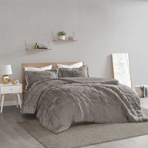 Home Essence Apartment Leena Shaggy Faux Fur Comforter Set Twin Twin Xl Grey Walmart Com Walmart Com