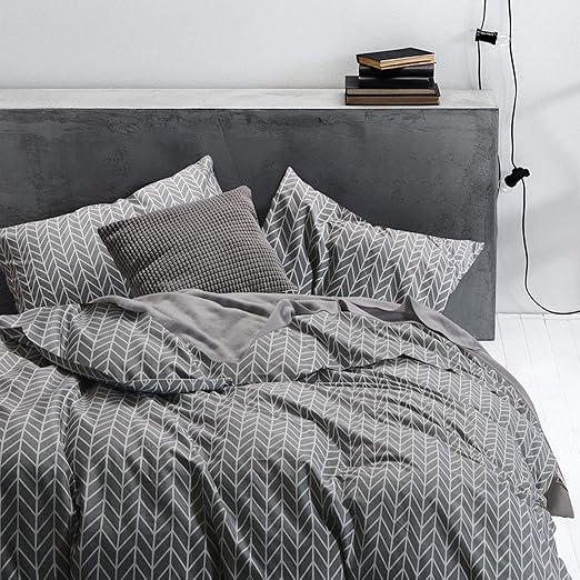 Amazon Com Geometric Chevron Bedding Sets Queen Comforter Cover Set Lightweight Cotton Duvet Cover Stripe Pattern Full Bedding Sets Gray With Zipper Ties3 Pieces Kids Bedding Sets Kitchen Dining